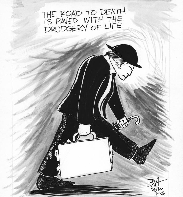 But Drudgery O Drudgery! When I call you out for thee That word becomes cathartic As it washes off the aches The tiredness, the ire The fresh and dutiful daily inks Of brimstone and hellfire It’s like a song, a one word air It fills the air with daring A momentary “damn it all!” No fear of anything Celestial, terrestrial or alien